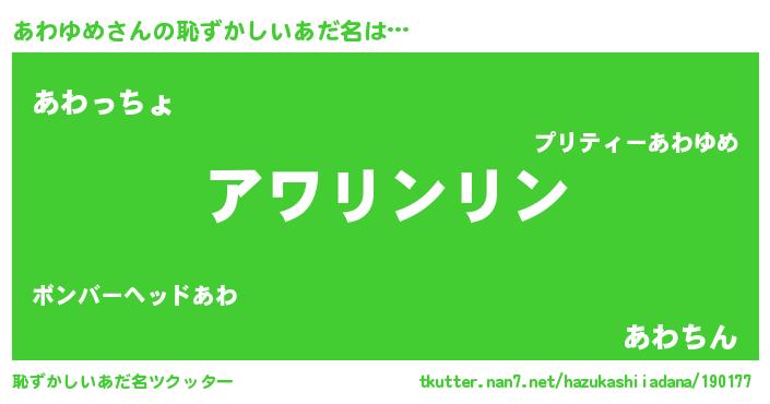 | 男性向けラノベタイトル風あだ名 | 『あわゆめの嫁は女の子じゃないと思った?』 |