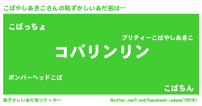| ヘコむあだ名 | 『こばお』『なまこ酢』『こばもー』 |