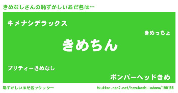 | ヘコむあだ名 | 『きめなし(笑)』『なまこ酢』 |