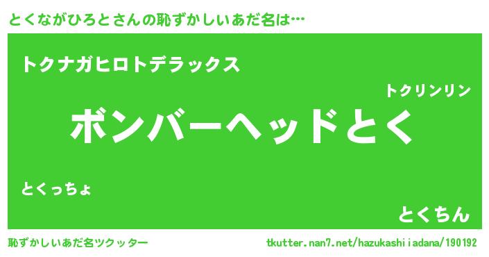 | 男性向けラノベタイトル風あだ名 | 『とくながひろとに滅ぼされるだけの簡単なお仕事です』 |