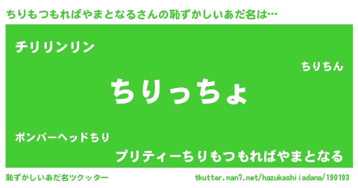 | ヘコむあだ名 | 『牛乳』『ちりっぺ』『ちりっふぃ~』 |