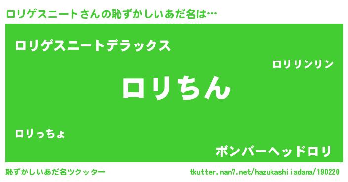 | ヘコむあだ名 | 『ロリゲスニート(笑)』『ロリお』 |
