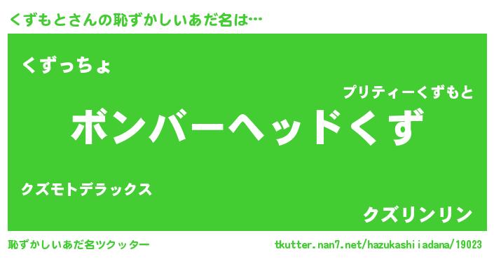 | ヒーロー風カッコイイあだ名 | 『天空の使者くずもと』『天弓騎士クズ』 |