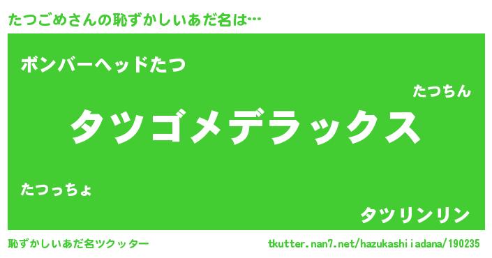 | ヘコむあだ名 | 『たつっ子』『たつごめ(遠い目)』 |