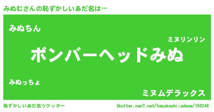 | ヘコむあだ名 | 『みぬむ(震え声)』『みぬっぺ』 |