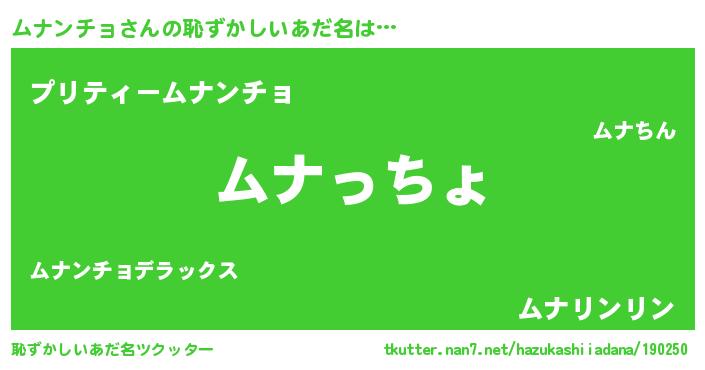 | ヘコむあだ名 | 『牛乳』『ムナにゅー』『ムナを』 |