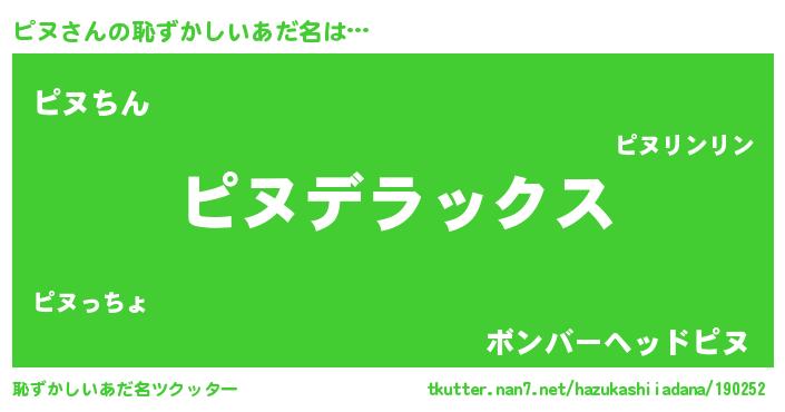 | ヘコむあだ名 | 『ピヌ(笑)』『ピヌっぺ』『酢こんぶ』 |