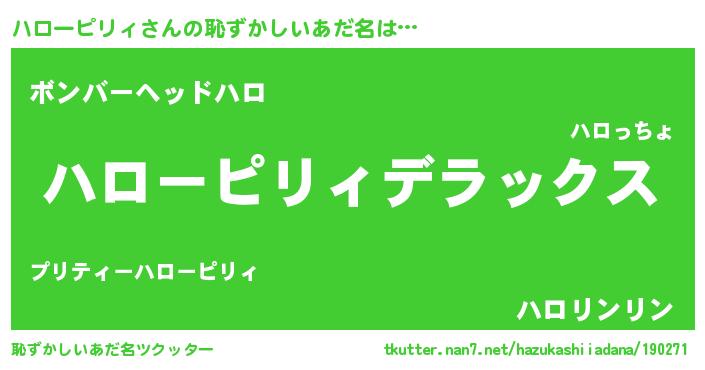 | ヒーロー風カッコイイあだ名 | 『最強戦士ハローピリィ』『幻影騎士ハロ』 |