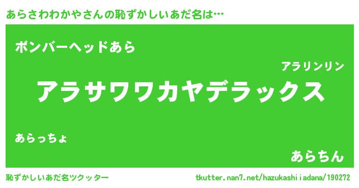 | ヘコむあだ名 | 『あらさわわかや(苦笑)』『あらを』 |
