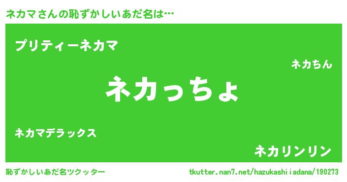 | ヘコむあだ名 | 『豆乳』『ネカふぇ~』『ネカ太郎』 |