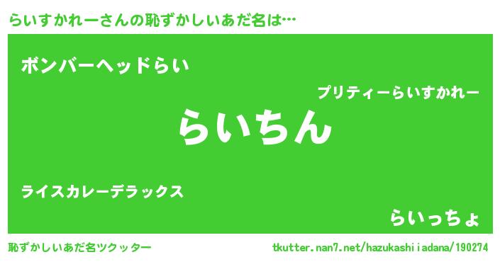| 意味不明あだ名 | 『永久保存らいすかれー』 |