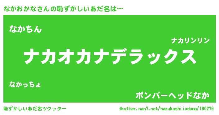 | 意味不明あだ名 | 『自称なかおかな』『永久保存なかおかな』 |