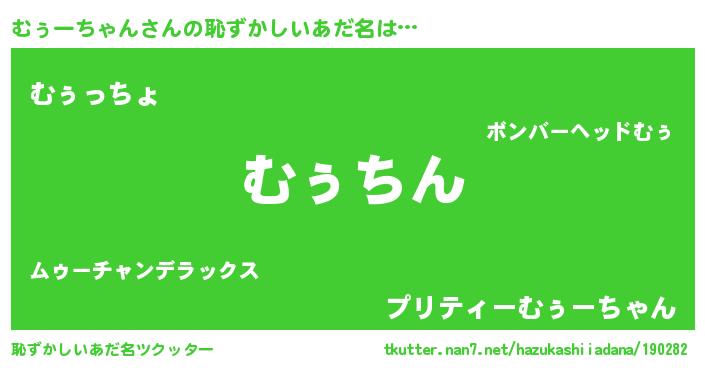 | 女子向けラノベタイトル風あだ名 | 『異世界で失敗しない100のむぅーちゃん』 |