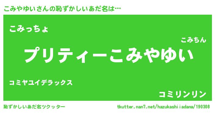 | 胡散臭い通販商品みたいなあだ名 | 『必ず成功する水晶球…その名も「こみやゆい」』 |