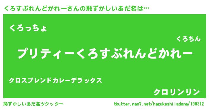 | ヘコむあだ名 | 『くろふぇ~』『なまこ酢』 |