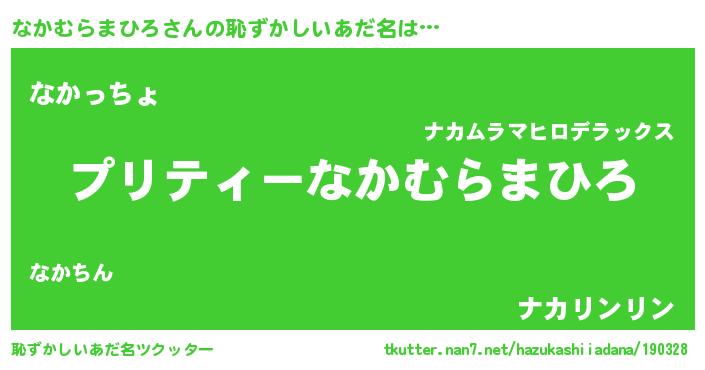 | ヒーロー風カッコイイあだ名 | 『スーパーナカムラマヒロ』 |