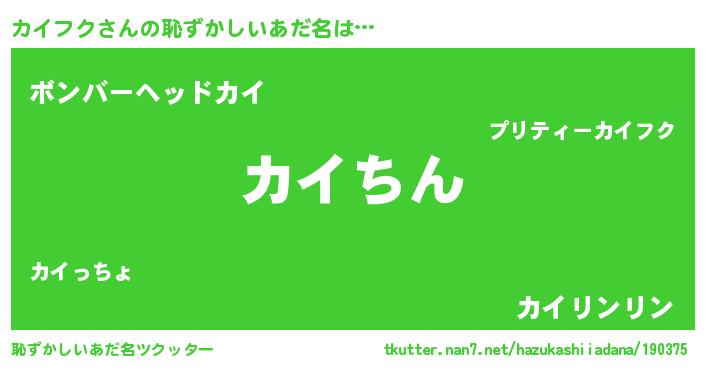 | ヘコむあだ名 | 『カイフク(震え声)』『カイっちょ』 |