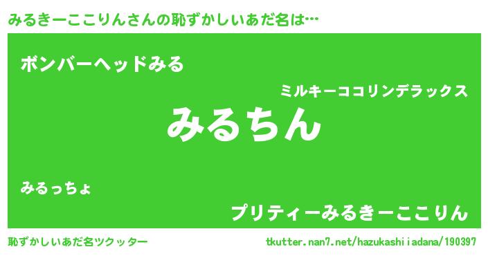 | 欧米人風あだ名 | 『ダレノガレみるきーここりん』 |