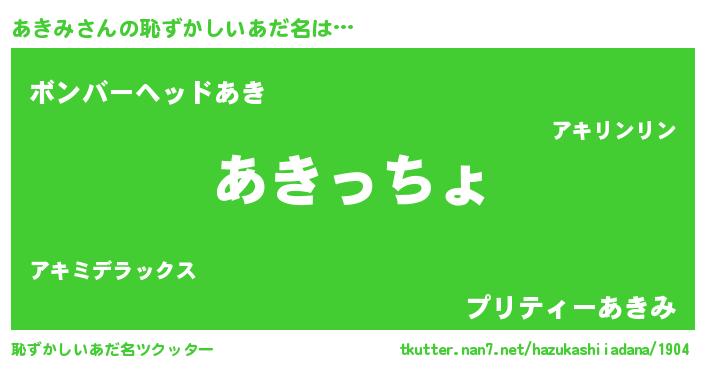 | ヒーロー風カッコイイあだ名 | 『ウルトラあきみマン』『スーパーアキミ』 |