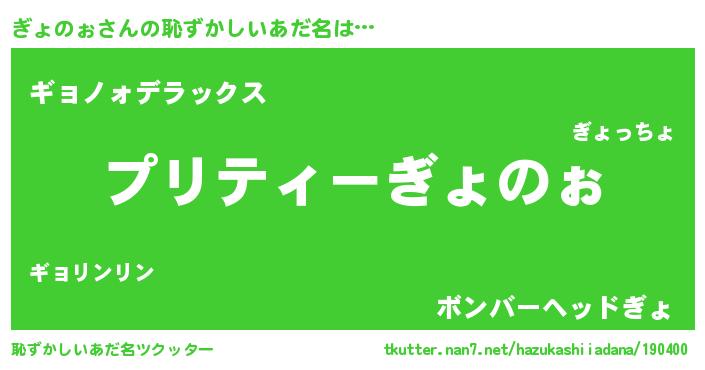 | 胡散臭い通販商品みたいなあだ名 | 『億万長者になれるブレスレット…その名も「ぎょのぉ」』 |
