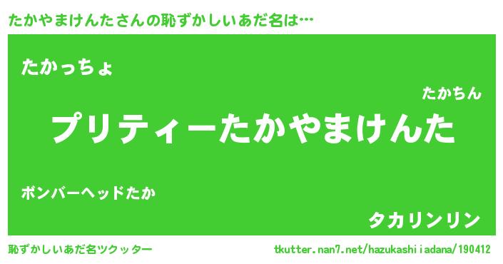 | 胡散臭い通販商品みたいなあだ名 | 『億万長者になれるブレスレット…その名も「たかやまけんた」』 |