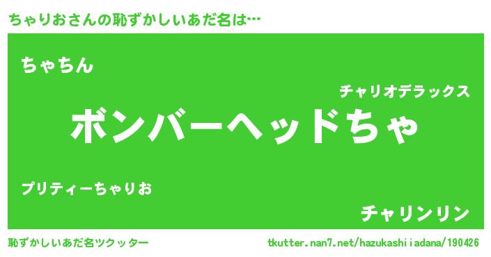 | ヘコむあだ名 | 『ちゃりお(震え声)』『ちゃっちょ』 |