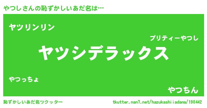 | ヒーロー風カッコイイあだ名 | 『仮面ヤツダー』『サイバー戦士ヤツシ』 |