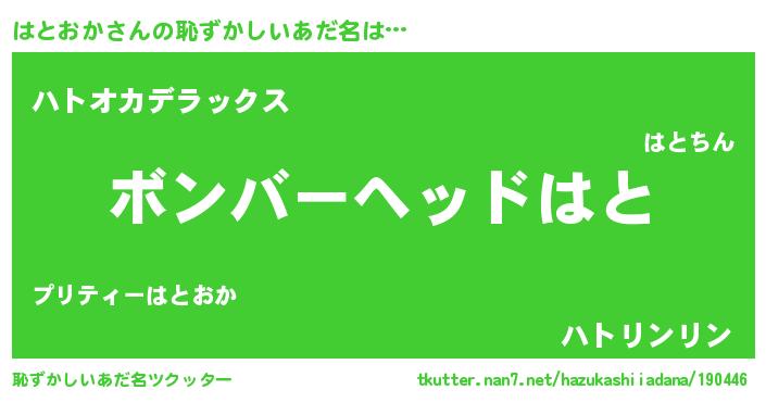 | ヘコむあだ名 | 『はとお』『はとおか(笑)』『牛乳』 |