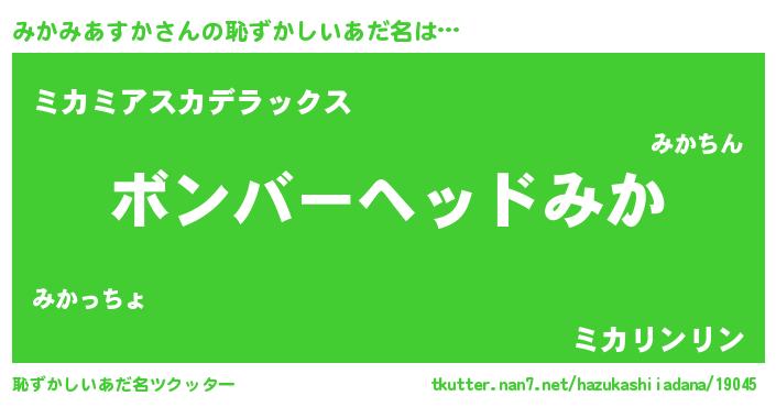 | ヘコむあだ名 | 『みかお』『みかみあすか(爆)』 |