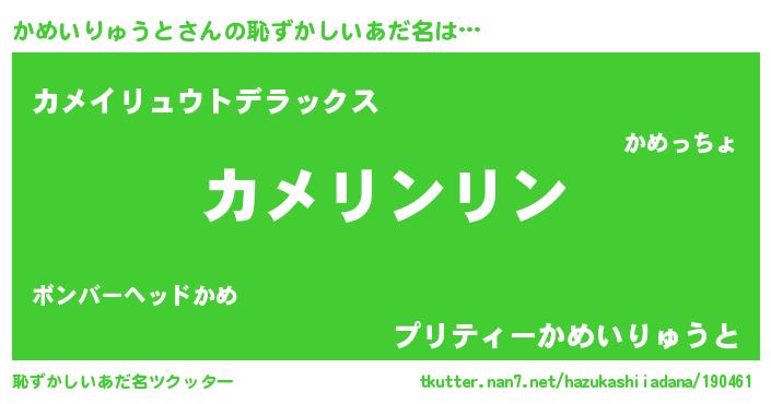 | 意味不明あだ名 | 『とにかく怪しいかめいりゅうと』 |