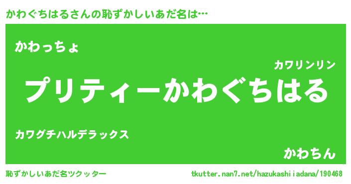 | ヒーロー風カッコイイあだ名 | 『スーパーカワグチハル』『仮面カワダー』 |