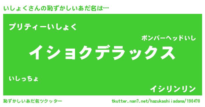 | ヒーロー風カッコイイあだ名 | 『超時空戦士イショク』『幻影騎士イシ』 |