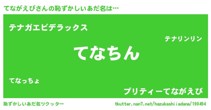 | 意味不明あだ名 | 『永久保存てながえび』『自称てながえび』 |