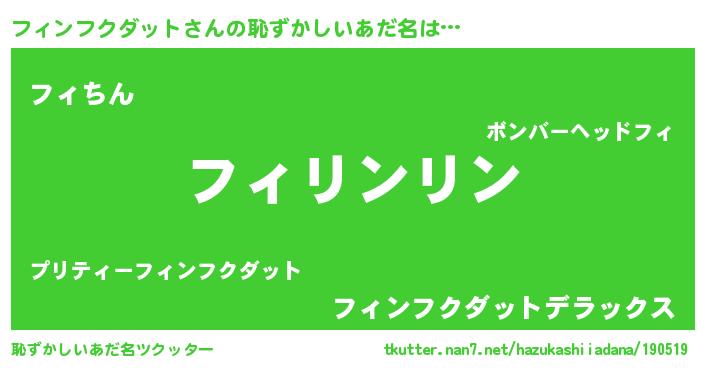 | 男性向けラノベタイトル風あだ名 | 『ダンジョンにフィンフクダットを求めるのは間違っているだろうか』 |