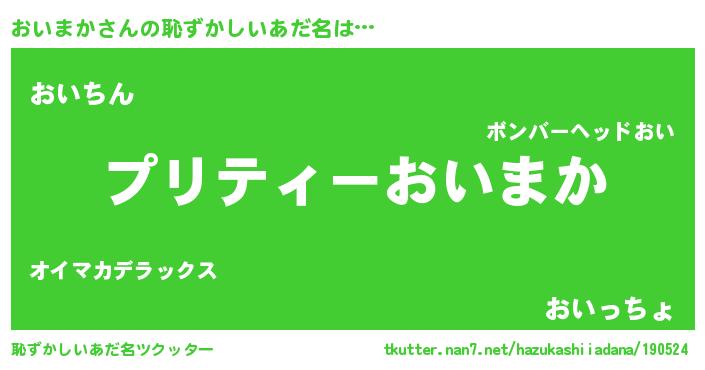 | 欧米人風あだ名 | 『マイケルおいまか』『ダニエルおいまか』 |