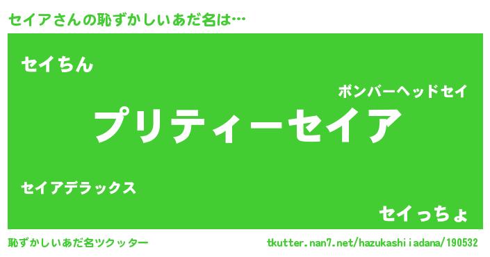 | 意味不明あだ名 | 『ペロリンセイア』『永久保存セイア』 |