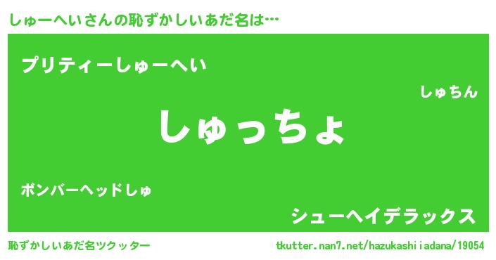 | 欧米人風あだ名 | 『しゅーへいクリステル』 |
