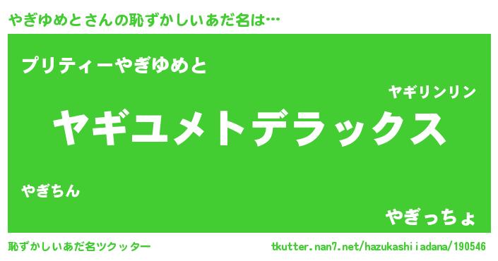 | ヒーロー風カッコイイあだ名 | 『最強戦士ヤギユメト』『炎刃騎士ヤギ』 |
