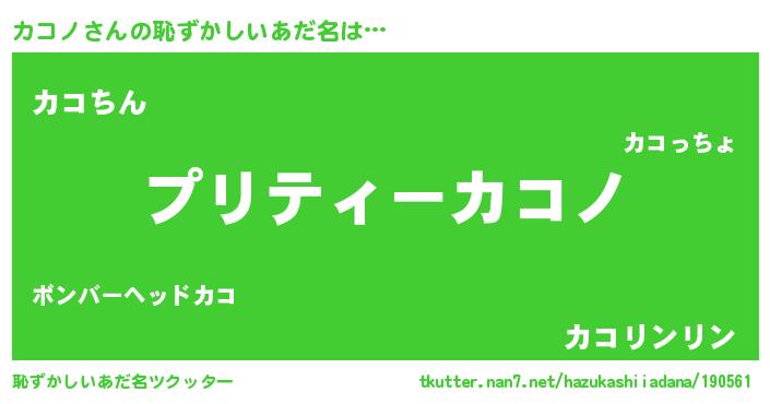 | 意味不明あだ名 | 『ペロリンカコノ』『永久保存カコノ』 |