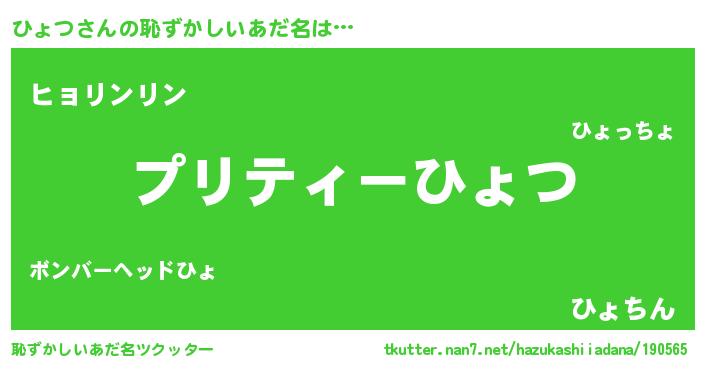 | ポケモン風あだ名 | 『ヒョチュウ』『ヒヒョツ』 |