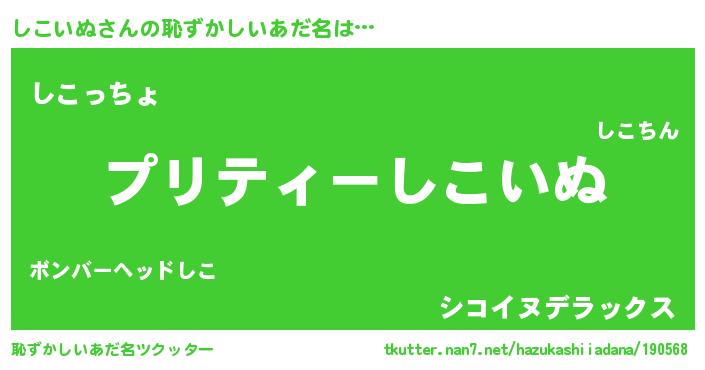 | 男性向けラノベタイトル風あだ名 | 『しこいぬの憂鬱』 |