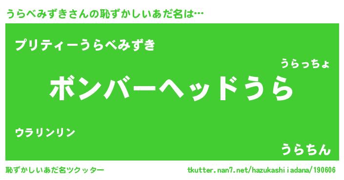 | ヘコむあだ名 | 『うらもー』『うらべみずき(笑)』 |