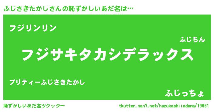 | 意味不明あだ名 | 『自称ふじさきたかし』 |