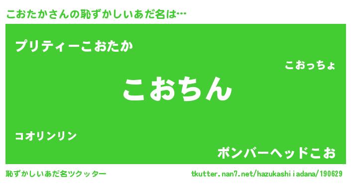 | ヘコむあだ名 | 『こおたか(苦笑)』『こおにゅー』 |