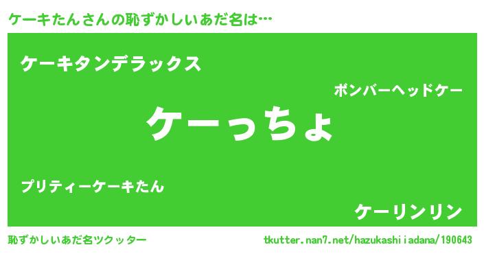 | 意味不明あだ名 | 『ケーキたんフォーエバー』 |