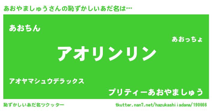 | 男性向けラノベタイトル風あだ名 | 『あおやましゅうに滅ぼされるだけの簡単なお仕事です』 |