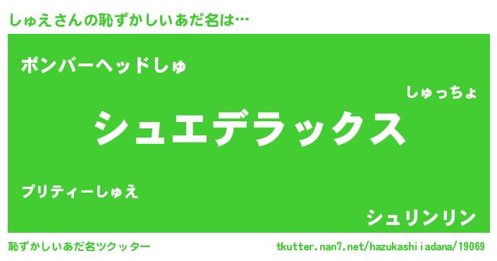 | ヘコむあだ名 | 『しゅぷりん』『豆乳』『しゅにー』 |