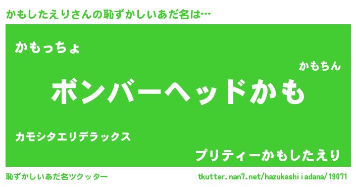 | ヒーロー風カッコイイあだ名 | 『正義の使者かもしたえり』 |