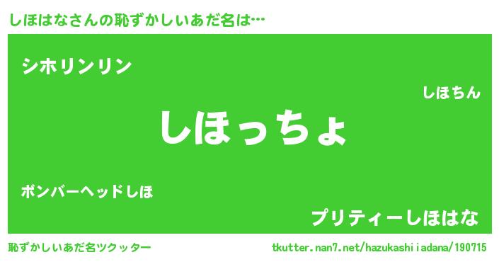 | 意味不明あだ名 | 『住所不定無職しほはな(9歳)』 |