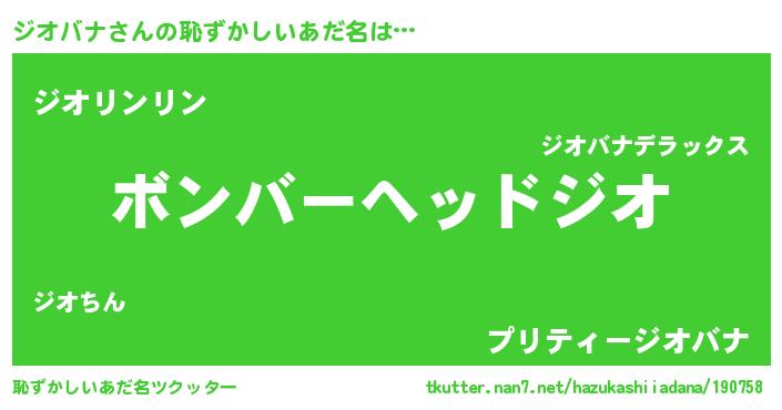 | ヒーロー風カッコイイあだ名 | 『慈愛の使者ジオバナ』『魔戒騎士ジオ』 |